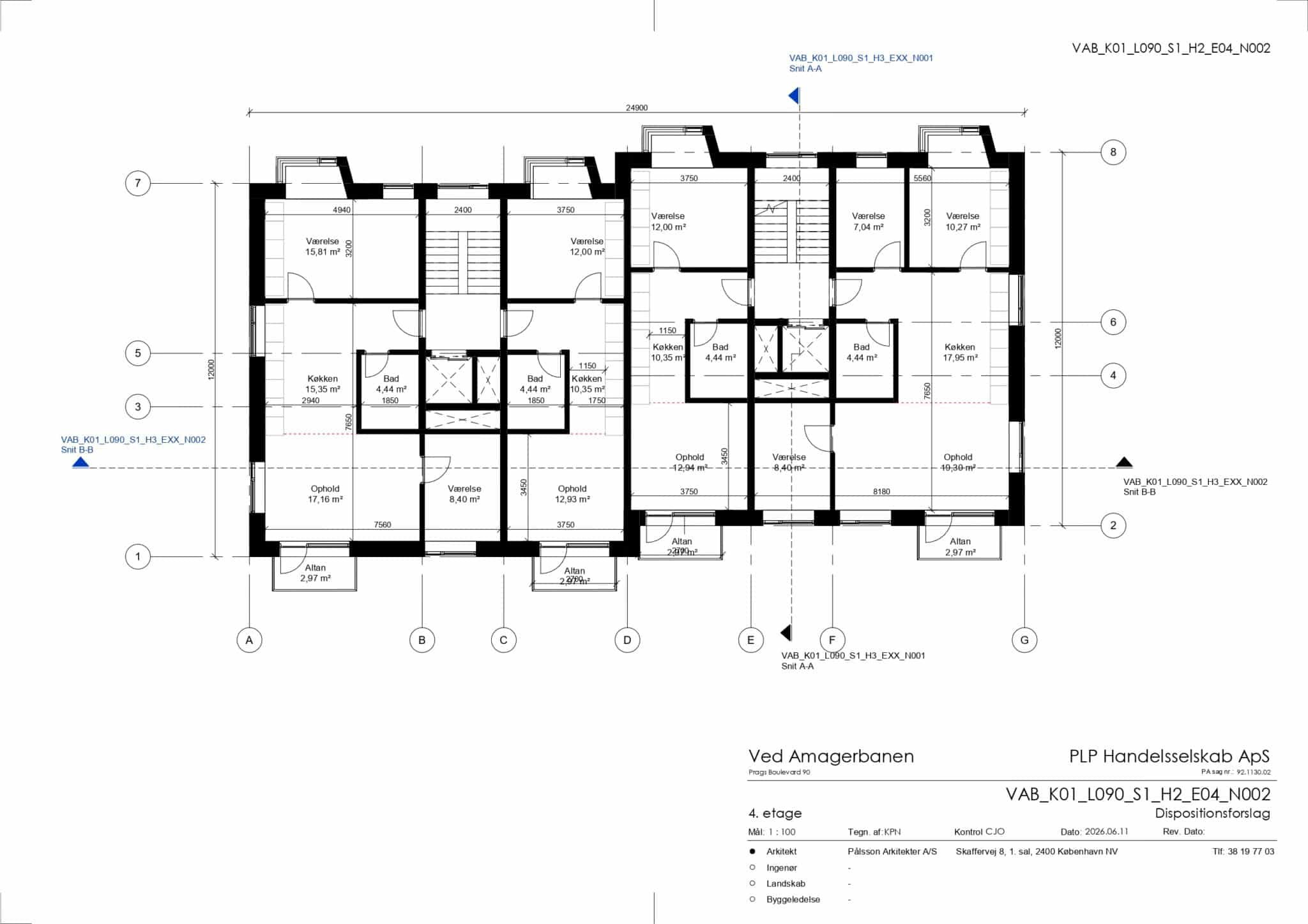 Bolignummer Lejlighed 15 | Etage 4. th | Vær. 3 | BBR m2 91.14 | Altan/terrasse Altan | Plantegning Se plantegning |